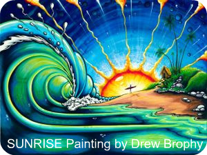 also, when i first saw “sunrise” it was small and i thought there was a cross on the beach and that seemed like a nice touch given that so much of the surf world is in the gutter and i hope mr brophy will seek to include elements of the christian life in his work… heaven knows how much surfers need that influence and inspiration!